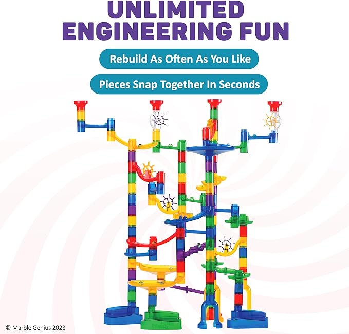 - Exciting Marble Genius Fun: Dive into the world of Marble Genius with this dynamic ball run set designed for kids ages 4-8. Perfect for holiday gifts, it encourages creativity and imaginative play, making it an ideal Christmas gift for kids STEM enthusiasts