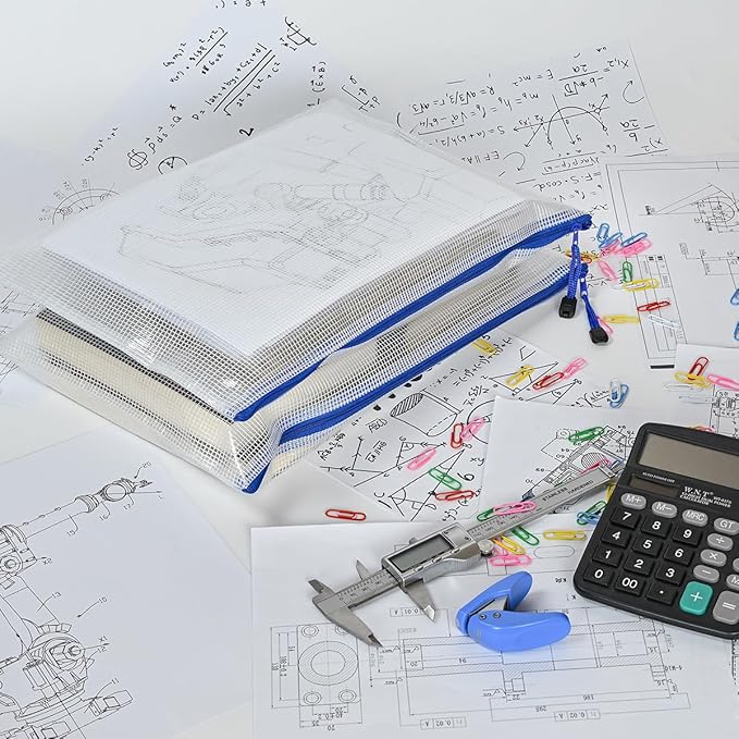 AUSTARK 20 Pcs Zipper File Bags, Plastic Mesh Pouch, Board Game Storage Bag, Waterproof Bags for Office School (B4 Size 15''x11'', White and Blue)