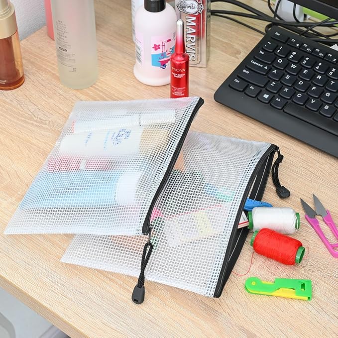 AUSTARK 20 Pcs Zipper File Bags, Plastic Mesh Pouch, Board Game Storage Bag, Waterproof Bags for Office School (A5 Size 9.2''x6.7'', White and Black)