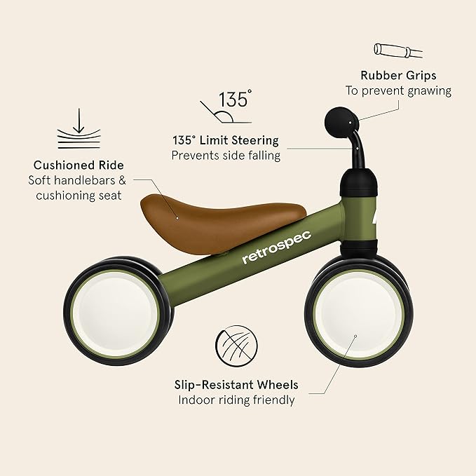 • BEGINNER BABY BIKE: Retrospec Cricket is designed for toddlers ages 12-24 months to develop motor skills needed to walk and ride. A wonderful baby girl or baby boy gift for a first birthday