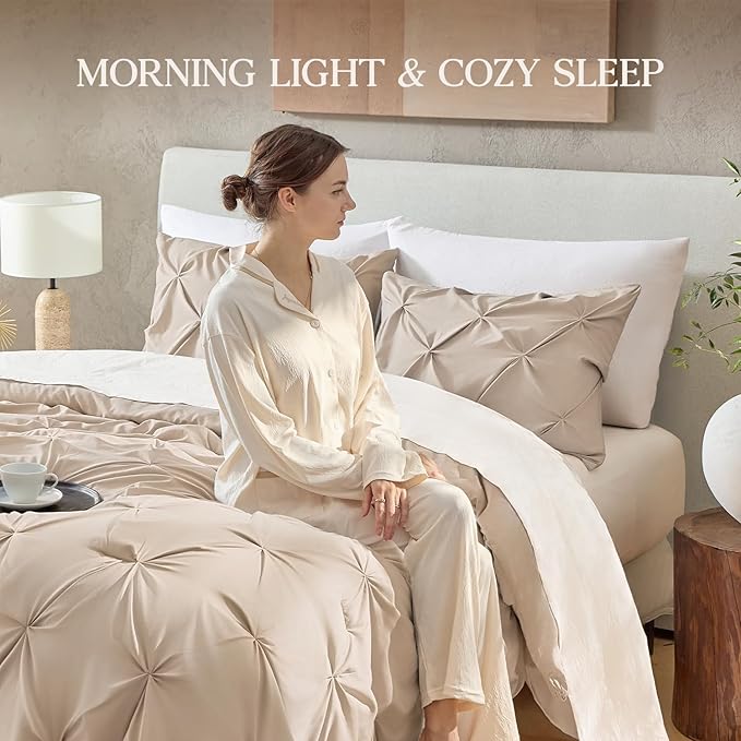 - SOFT AND COZY FABRIC: This wheat comforter set is made from high-quality microfiber, which is extremely soft and cozy. The pinch pleated comforter is filled with down alternative microfiber, which is lightweight to reach a perfect balance between warmth and comfort, brings you a good and sound sleep.