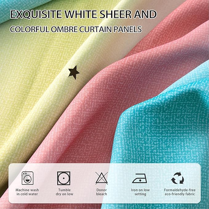 - PACKAGE INFORMATION: The package include 2 panels curtain come with 2 tiebacks. Each panel has both the 1 layer of tulle attached 1 layer of colorful star curtain. Grommets top(1.6 inch inner diameter), each curtain measures 34 inches wide, more length for you choose.