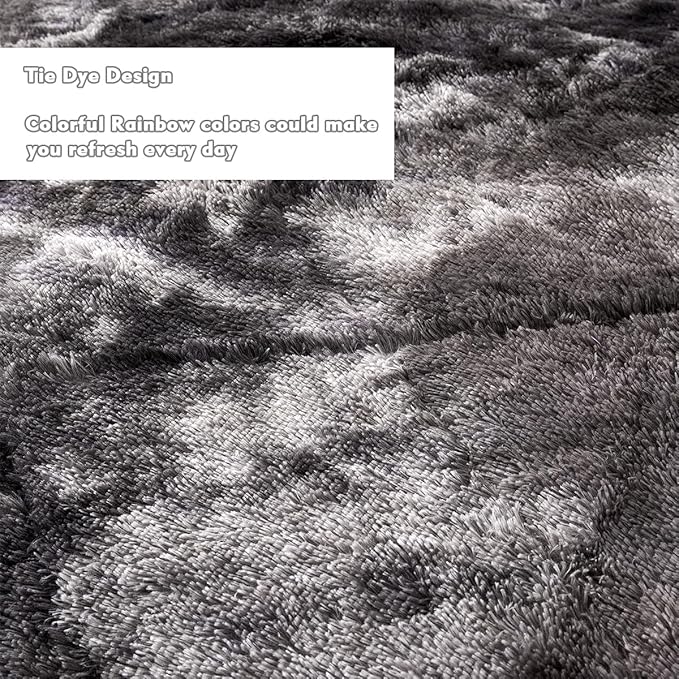 PERFEMET Dark Grey Plush Shaggy Comforter Set Twin Size 3 Piece Fluffy Faux Fur Tie Dye Bedding Sets Ultra Soft Long Hair Velvet Fuzzy Bedding for Boys Girls(Dark Grey, Twin)