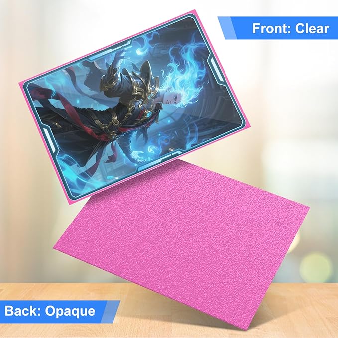 - Premium Design: The sides of the trading card sleeves are designed in different textures. The matte backing provides better grip, and the front is glossy and clear. Sturdy, durable and shuffle smooth, a good value of both sorting and playing.