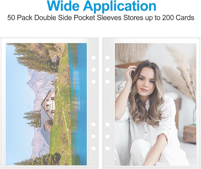 - Organize with Ease: Secure your memories in style with this 50 pack transparent photo sleeves. Designed for A5 6-ring binders, they're perfect for holding up to 100 cards and photos, ensuring a neat and tidy collection