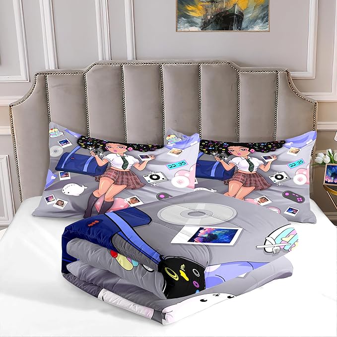 - Soft and Comfortable: Made from high-quality materials, our black girl comforter ensure durability and longevity. Not only does this kawaii girls comforter set bring decorative charm, but it also offers cozy warmth for a comfortable night's sleep.