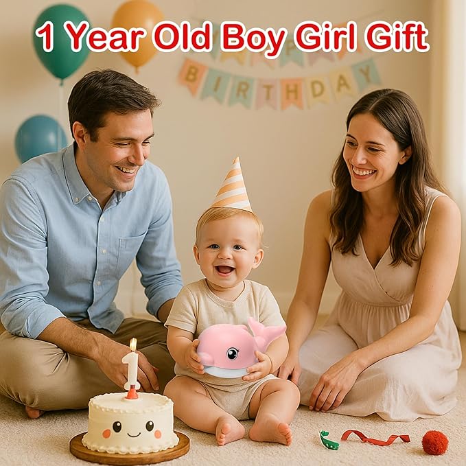 Bath Toys, Light Up Dolphin Baby Bath Toys for Babies 6-12 12-18 Months, Rechargeable Sprinkler Musical Toys, Easter Basket Stuffers Bathtub Toys for Toddlers 1-3 2-4 Boys Girls Infant Kids- Pink