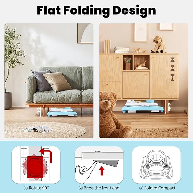 - 【Easy to Assemble & Foldable】: The foldable baby walker is easy to assemble, you can fold the baby walker with wheels and seat baby in just a few steps and walker for baby girl can be stored under bed or sofa without taking up too much space. The compact and folding design makes this portable adjustable baby walker easy to carry out anytime and anywhere
