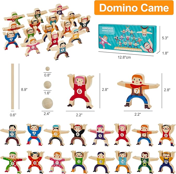 - [More Accessories]This Wooden Stacking toys Circus Acrobatic balance Building block in cludes 16 colorful smiling and funny Circus boys and Hercules girls,Each Building Blocks with a corresponding number (1-16),Additional 2 balance boards. 1 Big Ball and 1 Small Ball,