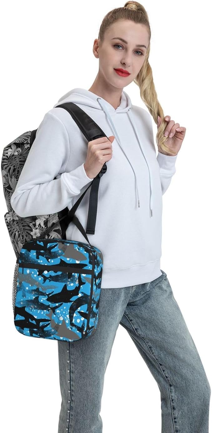 Abstract Sharks Insulated Lunch Bag Kids,Kids Lunch Box for Girls Boys,Bento Lunch Box Cooler Bag with Front Pocket for Women Men,Cute Lunch Tote Bag Lunchbox for Work/Office/School/Picnic