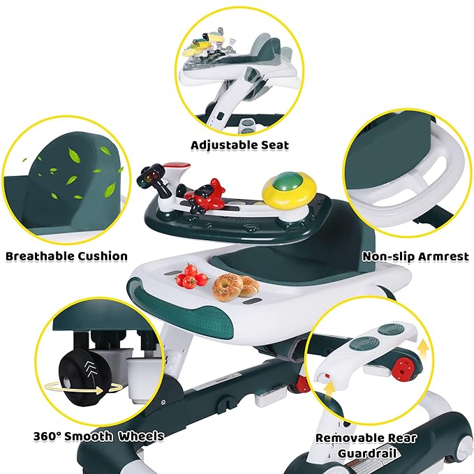 - Washable Seat Cushion : Our walkers are designed to promote your baby's interactive and walking abilities, ensuring safe and fun throughout exploration; Breathable high backrest cushion is not stuffy, the detachable design making it easy to clean