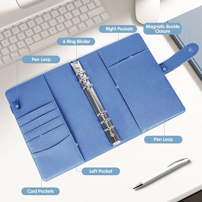 - Premium PU Leather Material: Crafted with durable and stylish PU leather, this A5 binder features a 6-ring refillable design, so that you can change the refill pages as you like, allowing easy customization and expansion to grow with your collection