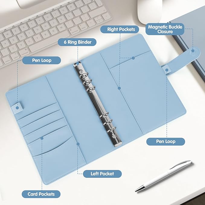 - Premium PU Leather Material: Crafted with durable and stylish PU leather, this A5 binder features a 6-ring refillable design, so that you can change the refill pages as you like, allowing easy customization and expansion to grow with your collection