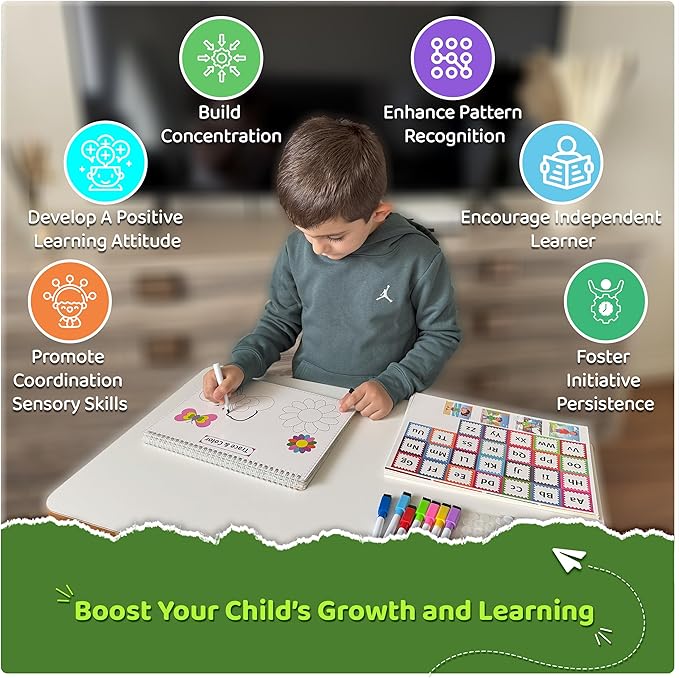 - Comprehensive Children's Learning Set: Our 8 x 11" well designed Montessori busy book features 15 interactive 520GSM High Quality paper pages, 8 stencil mold pages, 8 vibrant markers with erasers, and 200 reusable Velcro pieces. Designed to promote hands-on learning, tracing and fine motor skills, it provides an engaging, screen-free experience that toddlers can enjoy again and again.
