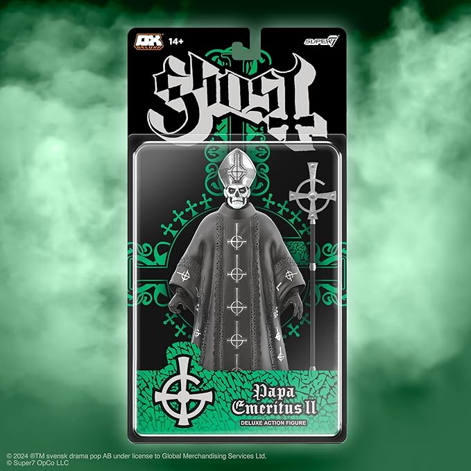 - GHOST SUPER7 ACTION FIGURE: The second incarnation of heavy metal band Ghost's frontman Papa Emeritus II joins the Super7 ULTIMATES! action toy figures lineup