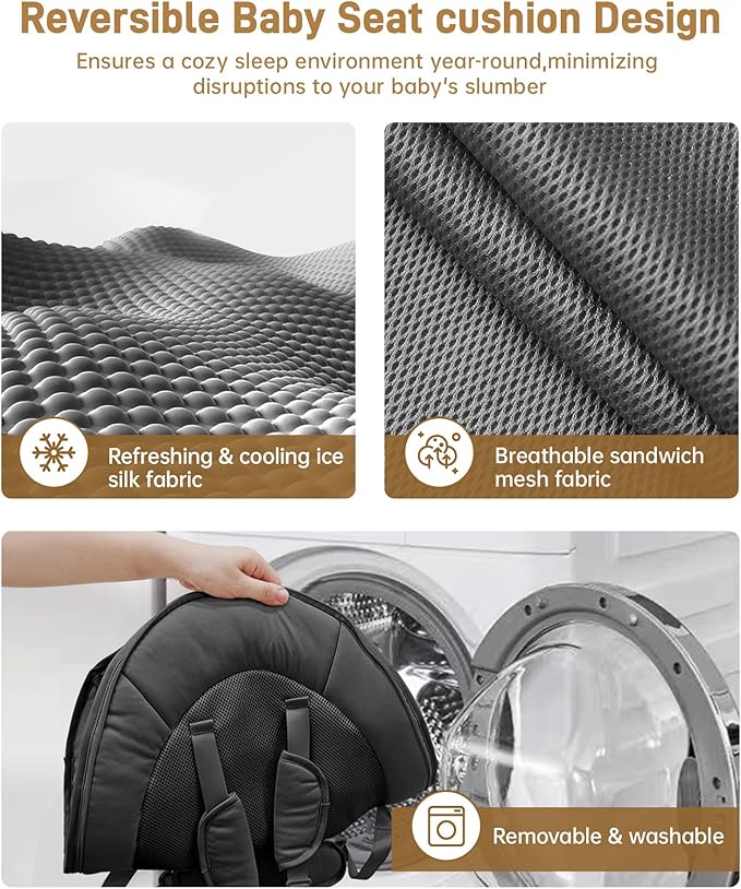 - Safe & Stable Design with 5-Point Harness & Shield-shaped Large Base : Our oneya baby rocker indoor with a shield-shaped large base ensures full ground contact, enhancing stability and preventing tipping. Coupled with a racing-grade 5-point harness, it provides dual protection. Easy to assemble and disassemble, lightweight, travel size and mosquito net make it possible to go out for a trip with your lovely baby.
