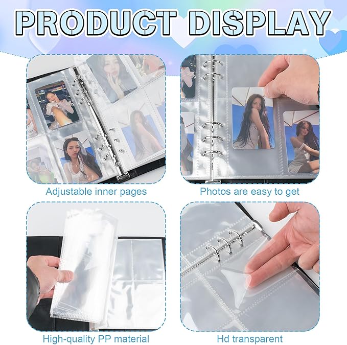- 【Premium Quality & Durable】Our photo card holder is made of quality pu leather material, durable and waterproof. Combine with a strongly attractive magnet, the buckle can be easily closed very tight, this kpop binder ensures long-lasting protection. The high-quality PP (polypropylene) inner pages are PVC-free, tear-resistant, and safe for your precious cards.