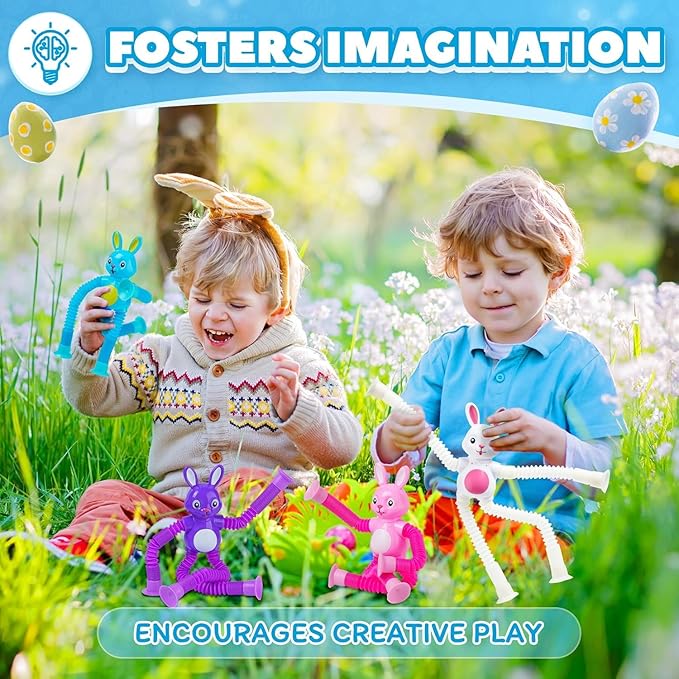 - Easter Basket Stuffer:Calming & Fun for Kids!Adorable Bunny pop tube toys with suction cups provide endless sensory play. Great for kids with ADHD, autism, or as a travel toy.