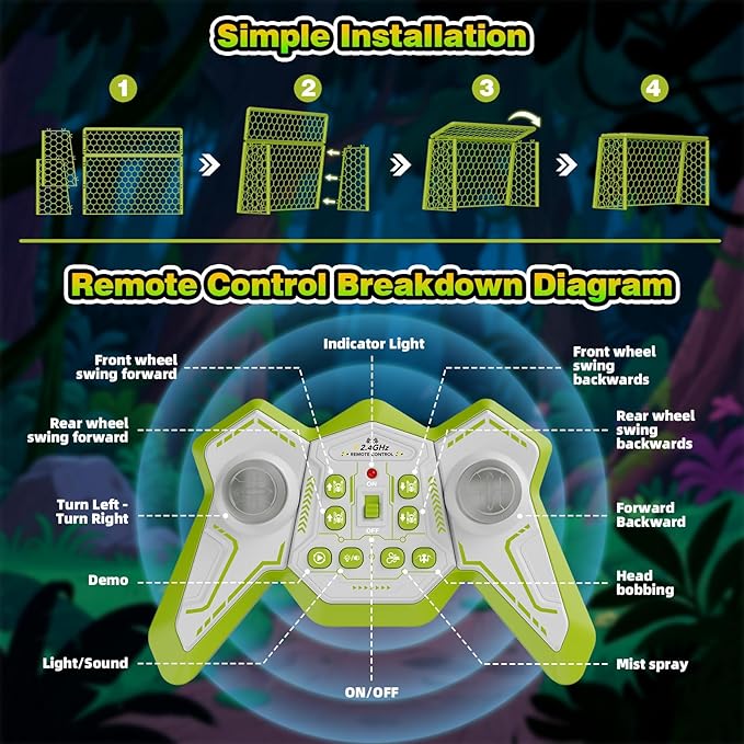 - 🦗【Anti-interference & Flashing Lights】The 2.4Ghz monster jam trucks anti-interference remote control supports long-distance control without interfering with each other, which can greatly improve the stability of the remote control car, the eyes glow with an intense, piercing light, mimicking the mantis's keen predatory gaze, while the transparent wings illuminate with a soft, pulsating glow, as if ready to take flight, perfect for nighttime races, glow-in-the-dark adventures.