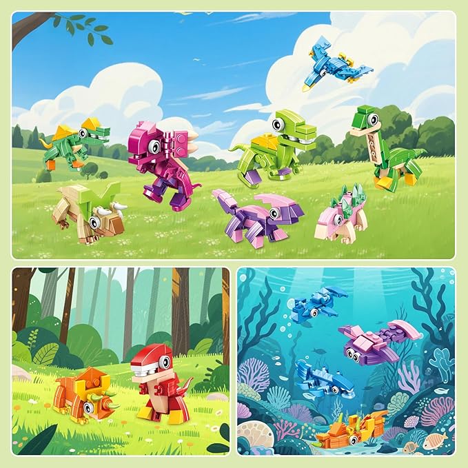 - Clear Instructions & Fun Assemble; Our dinosaur building set includes separate packages and un-assembled building blocks, containing all the pieces to build one dinosaur and simple step-by-step graphic instructions in each pack. Kids building toys will be the fun kids-parents activity on kids party.