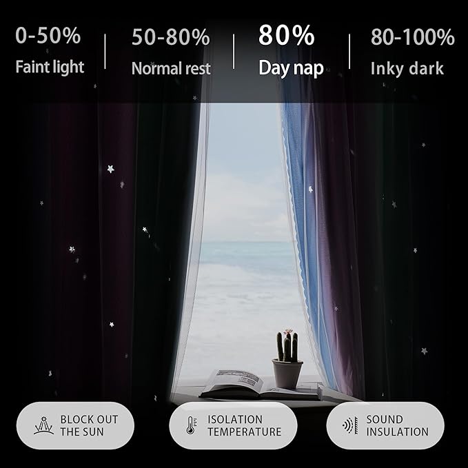 - GIFT FOR LIFE: Curtain keeps out just the right amount of light so you or your child can sleep in peace. The colors are so pleasant to look at, and the sun comes through the little stars and makes the room sparkle, these make the room look just magical. This will bring a little beauty to your life.
