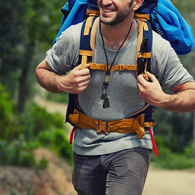 - 【Widely Used】As a cool lanyard key chains, you can connect your keys, ID badges, camera, flashlight, wallet, whistle and etc. You can also remove the parachute rope, which can be used to tie shoes, hang clothes, fix things, and even tent lines. You can easily and confidently enjoy any outdoor activities!