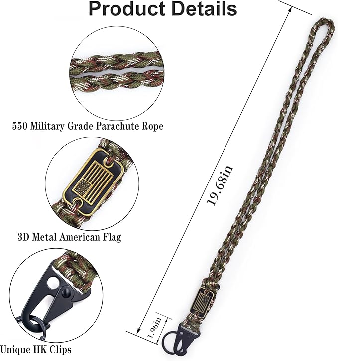 - 【Upgraded Design】Our paracord lanyard keychain adds a 3D USA flag design, Every time you glance down at your paracord lanyard, you’ll be thankful for those who served that USA Flag with honor.