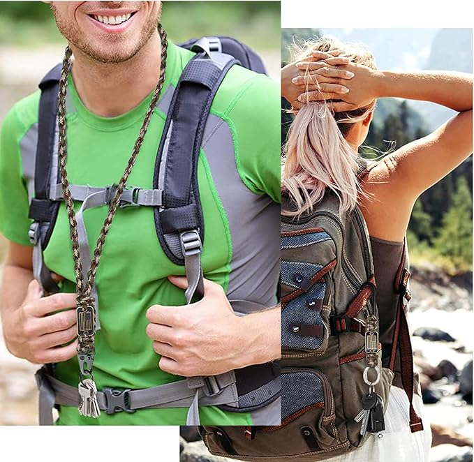 - 【Widely Used】As a cool lanyard key chains, you can connect your keys, ID badges, camera, flashlight, wallet, whistle and etc. You can also remove the parachute rope, which can be used to tie shoes, hang clothes, fix things, and even tent lines. You can easily and confidently enjoy any outdoor activities!