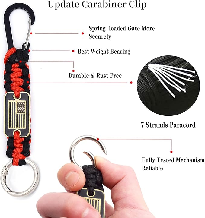 - 【Improved High Quality Hook】Our paracord lanyard keychain features durable zinc alloy HK clips with smooth, rounded edges for comfortable carrying, while the rust-resistant black coating ensures long-lasting use. The thoughtful design keeps your keys secure yet easily accessible. The sturdy metal clasp allows effortless key changes—no more pinched or scratched fingernails!