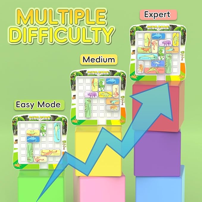 - EDUCATIONAL DESIGN: Brain teaser sliding puzzle featuring 15 vibrant dinosaur patterns, perfect for developing problem-solving skills and strategic thinking