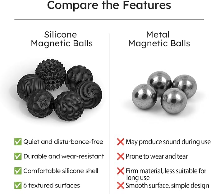 - 【Low key and quiet office toys 】: These magnetic Fidget balls are coated with silicone and designed with magnetism, making them almost noiseless and not disturbing others. They are perfect for effectively relieving stress, improving attention, relieving anxiety, promoting relaxation and focus during work hours, meetings, or study environments
