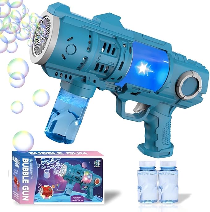 - AWESOME BUBBLE GUN: Elevate the Fun with Our Light Up Bubble Gun, Bubble Machine Gun for Kids 2 Bottles of 100 ml (3.5oz) Bubble Solution Offering a Awesome Package for a Bubbly Extravaganza. Entertaining Bubble-Blowing wherever you go. which Suits for Kids Ages 8-12.Install the 4 AA Battery.(Batteries Not Included)