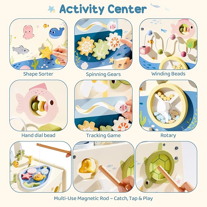 - All-in-One Activity Walker - This isn’t just another baby push toy—it’s the beginning of countless “firsts.” From shape sorting to fishing play, every feature builds skills and sparks imagination. More importantly, this toddler push toy helps create cherished moments you’ll remember long after your little one takes their very first confident steps.