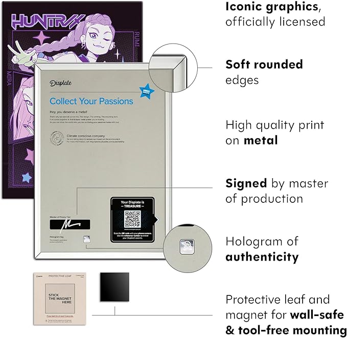 - Hassle-Free Mounting – No Frame, No Hassle : Forget tools and nails! Each Displate features a simple magnet mounting system that’s damage-free and easy to install. This wall decor is ready to hang in minutes, making it a must-have for anyone looking to upgrade their room decor quickly and effortlessly.