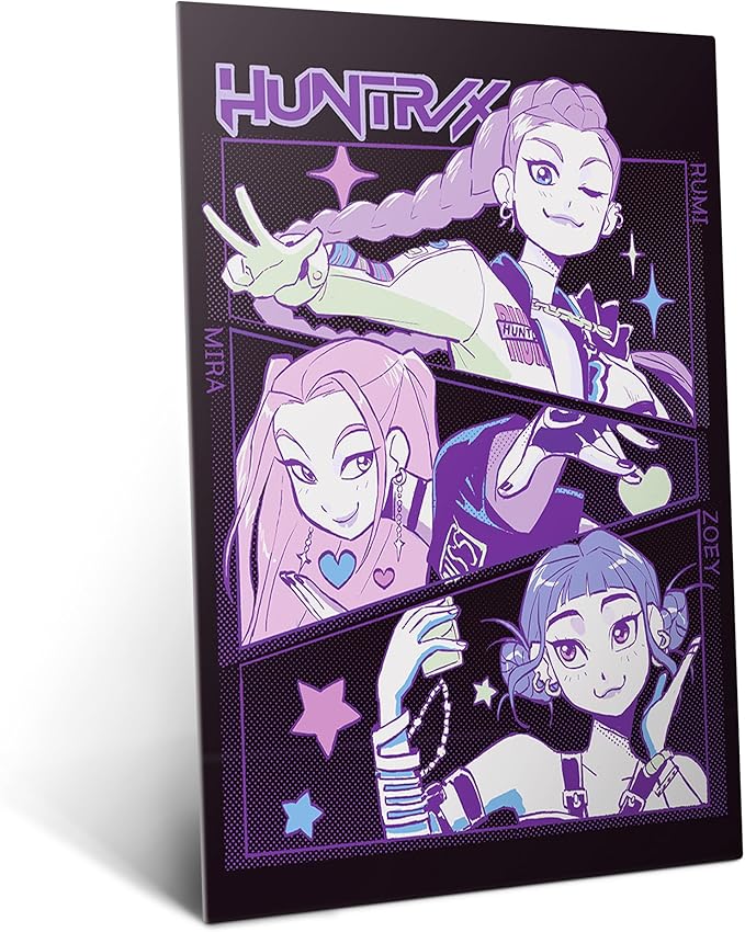 - Officially Licensed KPop Demon Hunters Metal Poster : Discover the vibrant world of Netflix KPop Demon Hunters (2025) with this collectible metal wall decor, blending fantasy with bold K-pop artistry. Featuring fan-favorite characters like Huntrix, Saja Boys, Derpy Tiger, and Mira, Rumi, Zoey, this collectible poster captures the essence of kpop fantasy art and the bold demon hunter aesthetic. Crafted for fans of urban fantasy, idolcore, and anime-inspired kpop.