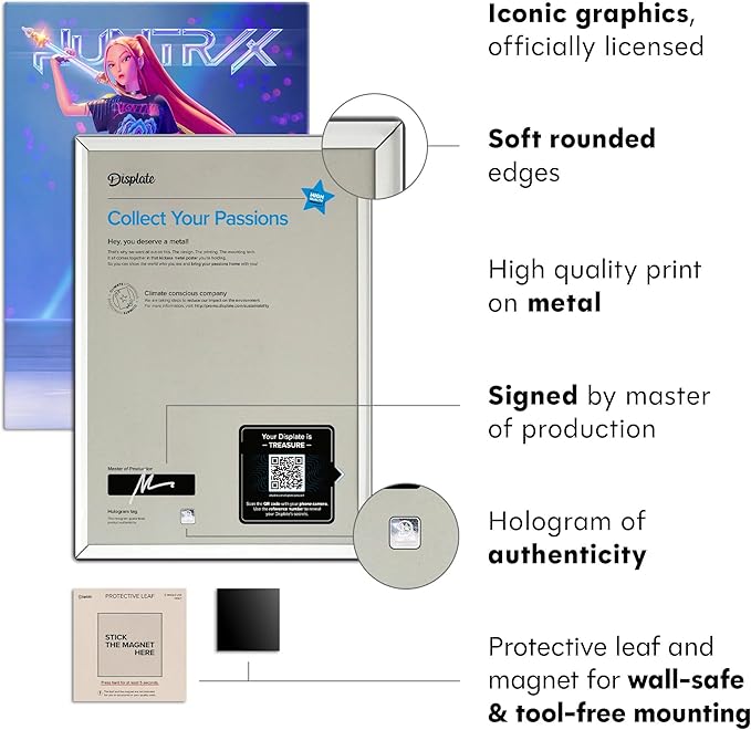 - Hassle-Free Mounting – No Frame, No Hassle : Forget tools and nails! Each Displate features a simple magnet mounting system that’s damage-free and easy to install. This wall decor is ready to hang in minutes, making it a must-have for anyone looking to upgrade their room decor quickly and effortlessly.