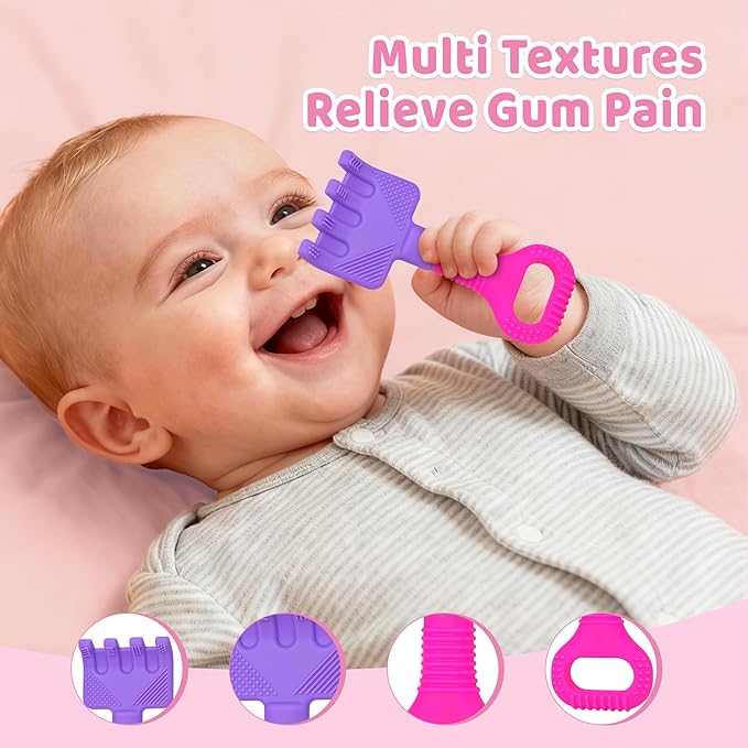 - âš ăTextured for Sensory & Gum Reliefă: The teether infant toys 3-6 months baby teether featuring soothing ridges and sensory bumps, this teethers for babies 3-6 6-12 months helps turn discomfort into a calming explorationâengaging your babyâs senses while massaging tender gums.