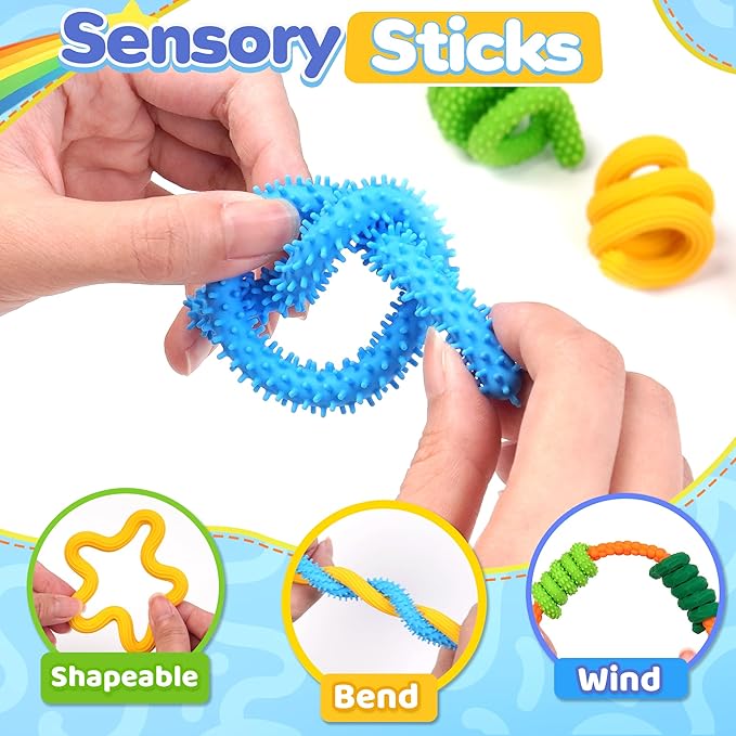 - [ADHD Sensory Autism Toy] This fidget toys includes 8 sensory sticks that kids can bend and connect into countless shapes. It encourages creativity, helps develop fine motor skills and hand-eye coordination, while independent play supports concentration