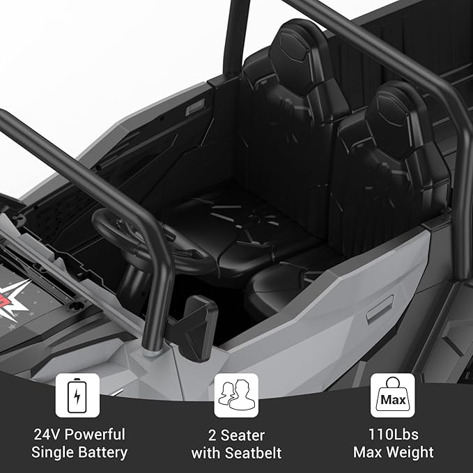 • Kids Driving & Parental Remote - This 24V ride on truck UTV can be easily started with one button. Kids can drive the truck freely with the foot pedal and steering wheel. The included remote control gives parents full control of the ride-on truck to ensure a safe and enjoyable ride experience for younger children.