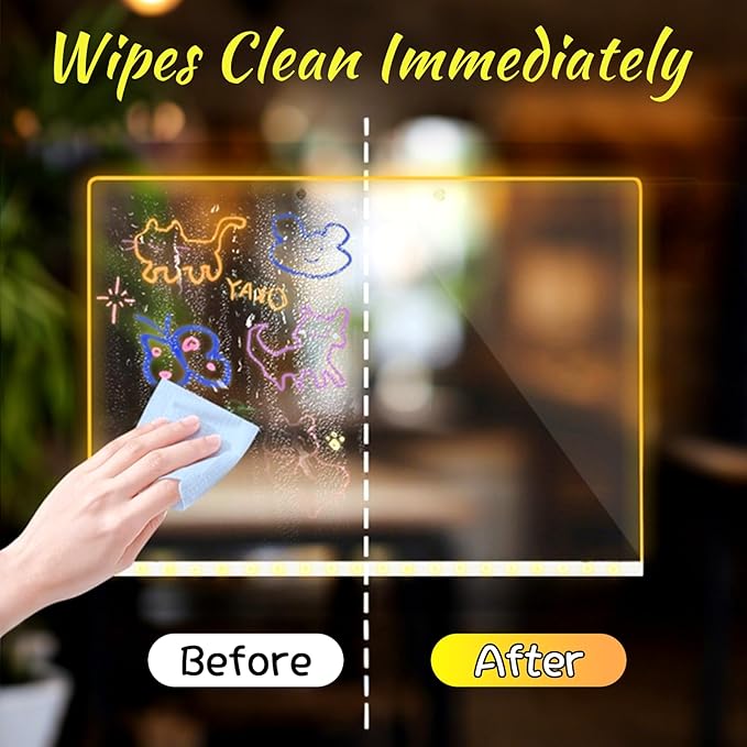 - Upgraded Durable Acrylic Material: This LED note board is made of polished acrylic material, with a durable and scratch-resistant surface. Complete Accessories includes 1 angle-adjustable tripod, and 7 color pen, you can write or draw at will, easy to clean, can be used repeatedly