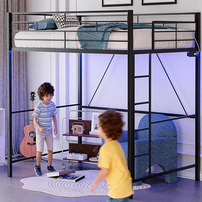 - 【Effortless Side Charging Solution】Custom-engineered for the metal full loft bed, this bed features a dedicated side charging station on the upper bunk, including 2 AC outlets, 1 USB and 1 Type-C ports. With power right at your fingertips, you won’t have to leave the comfort of your bed to charge devices—taking daily convenience to a whole new level.